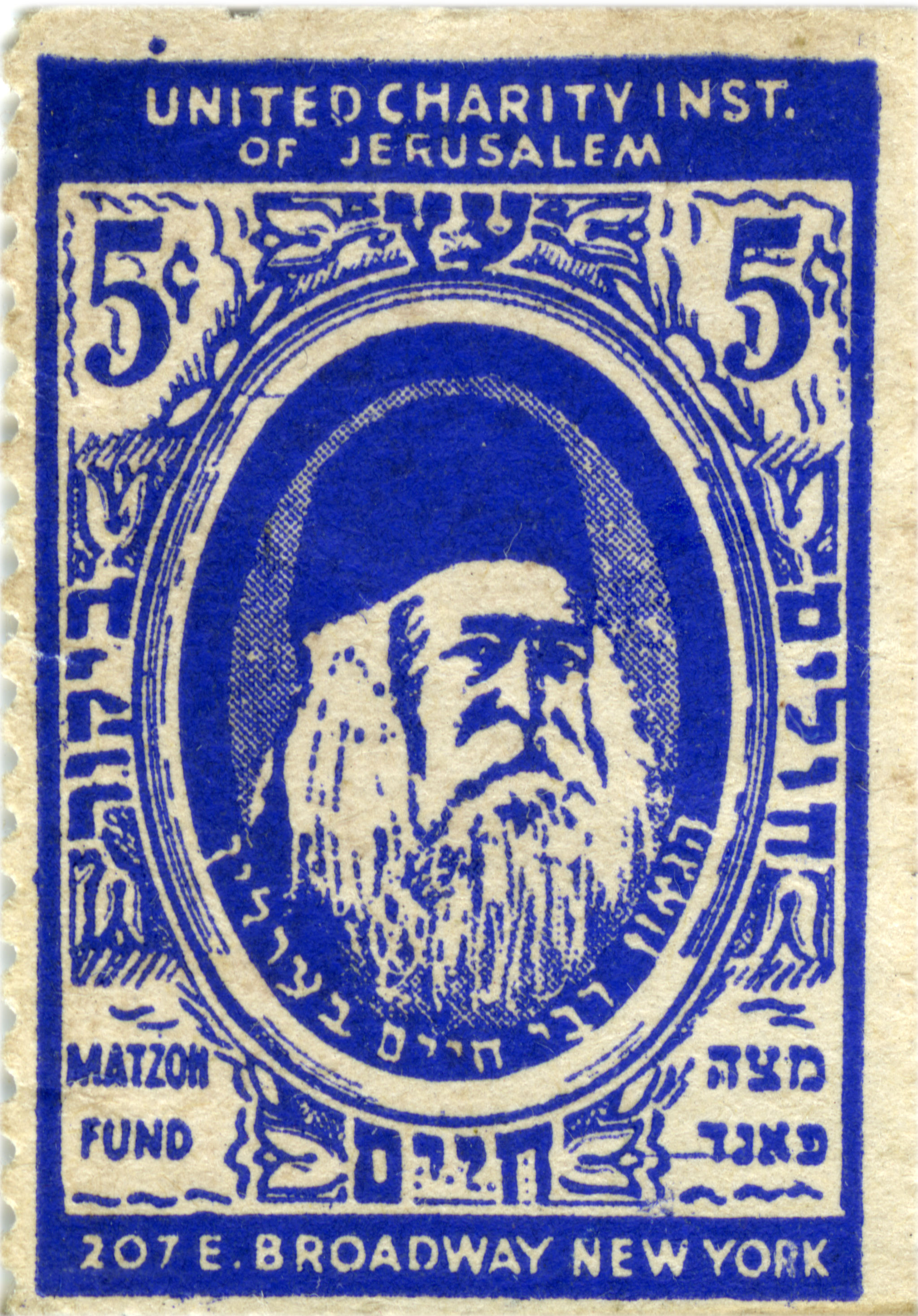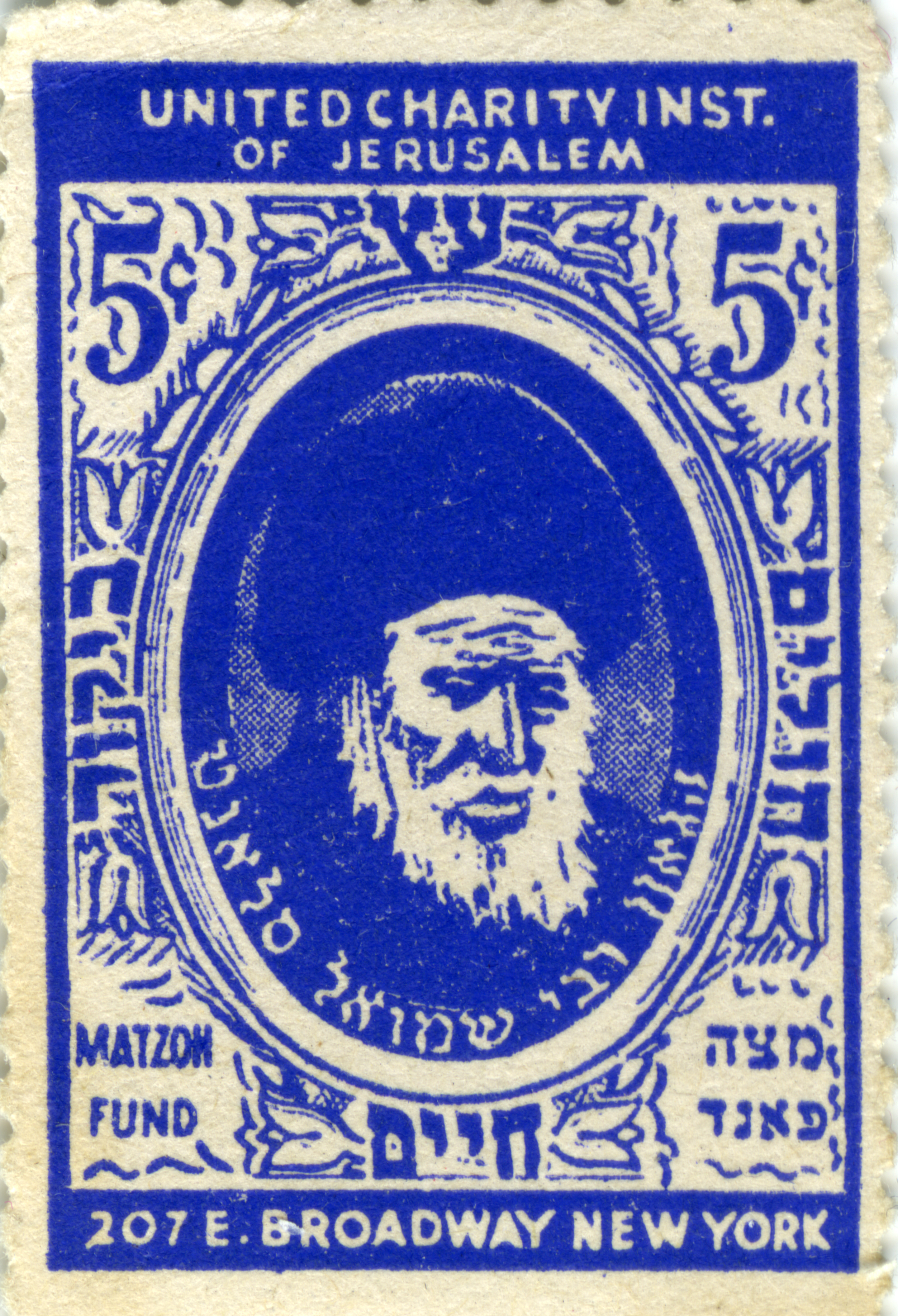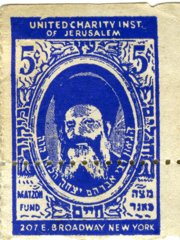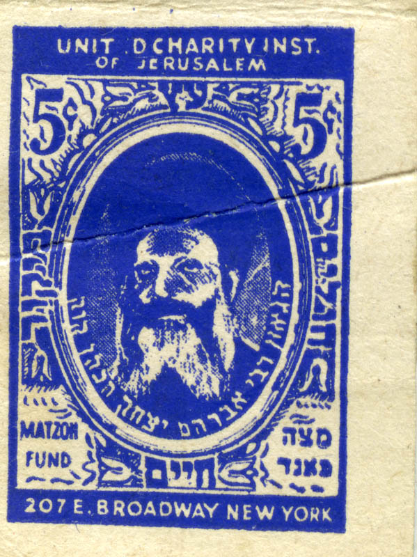 Six charity stamps depicting famous rabbis issued by the United Charity Institutions of Jerusalem |