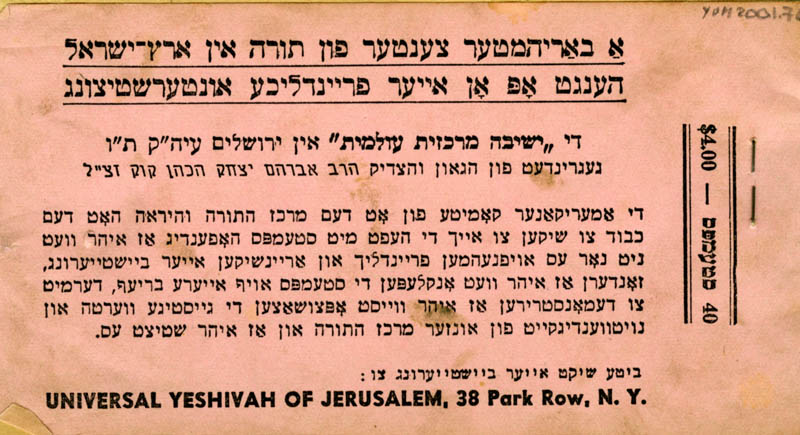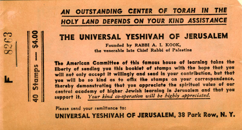 Book of charity stamps for The Universal Yeshivah of Jerusalem |