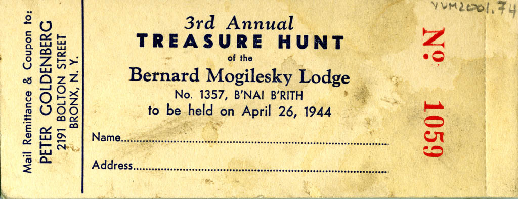 Booklet listing prizes for Bnai Brith Treasure hunt |