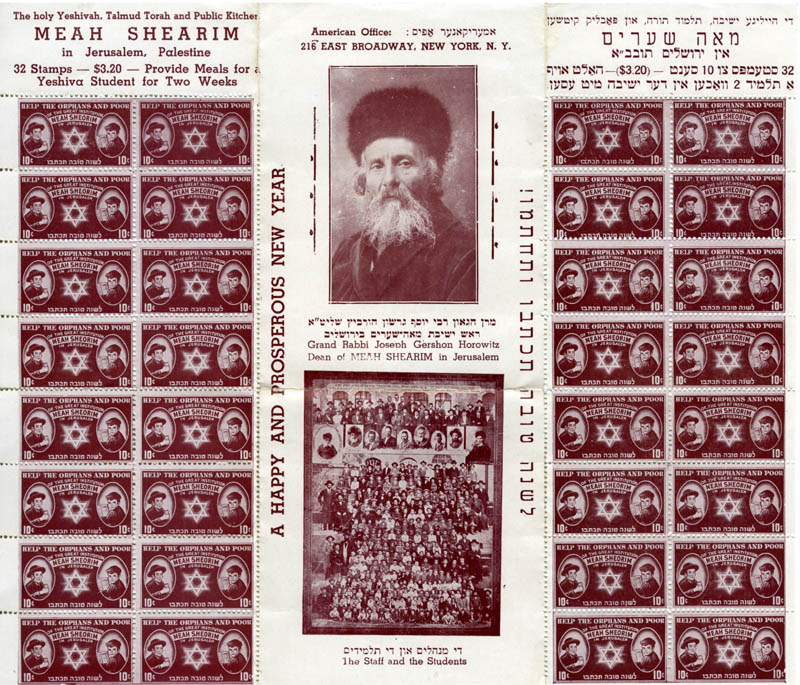 Sheet of charity stamps to benefit Yeshivah, Talmud Torah |