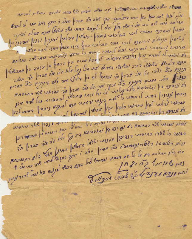 Marriage contract of Aharon son of Yaakov Zus and Sarah daughter of Asher Zelig (ketubah) (ketubah) |