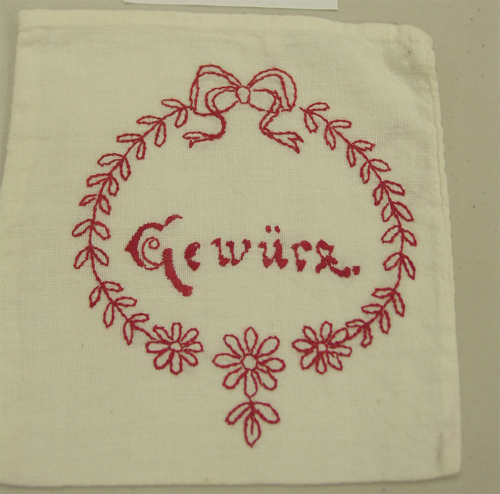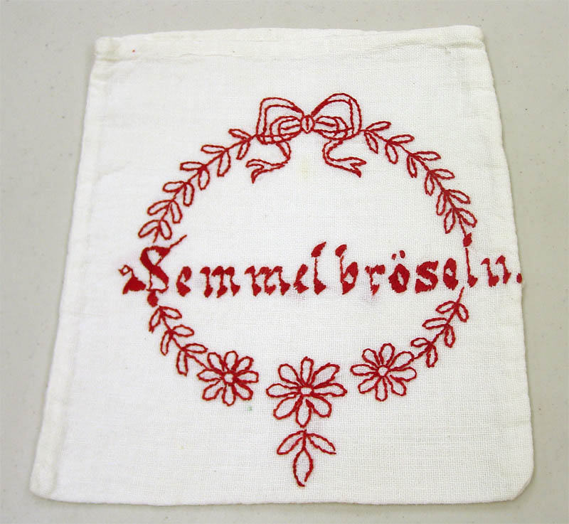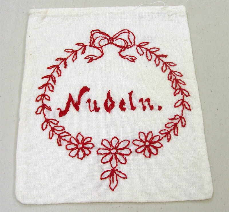Title: Five embroidered kitchen storage bags