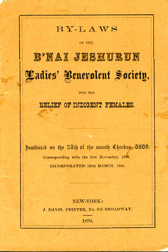 By-Laws of the B'nai Jeshurun Ladies' Benevolent Society for the Relief of Indigent Females |